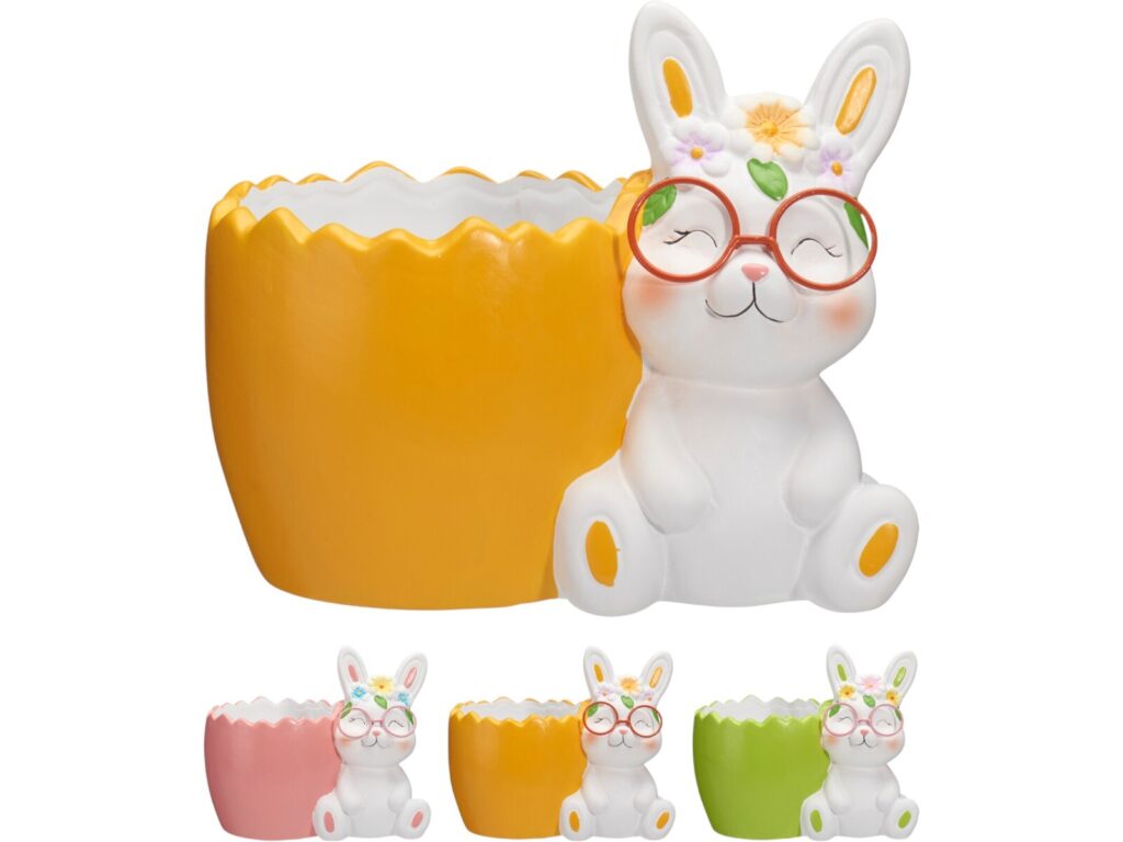 CERAMICA- COELHO+VASO COR:CHOCOLATE AREADO