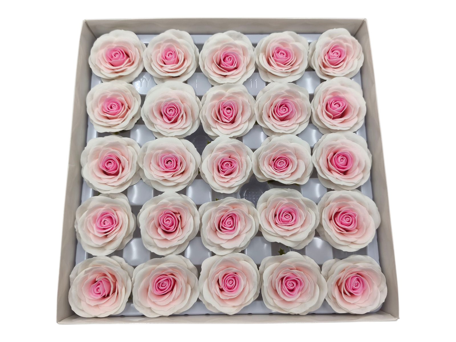CAIXA C/25 ROSAS 6.5CM SABAO 5CM COR:CREME/ROSA
