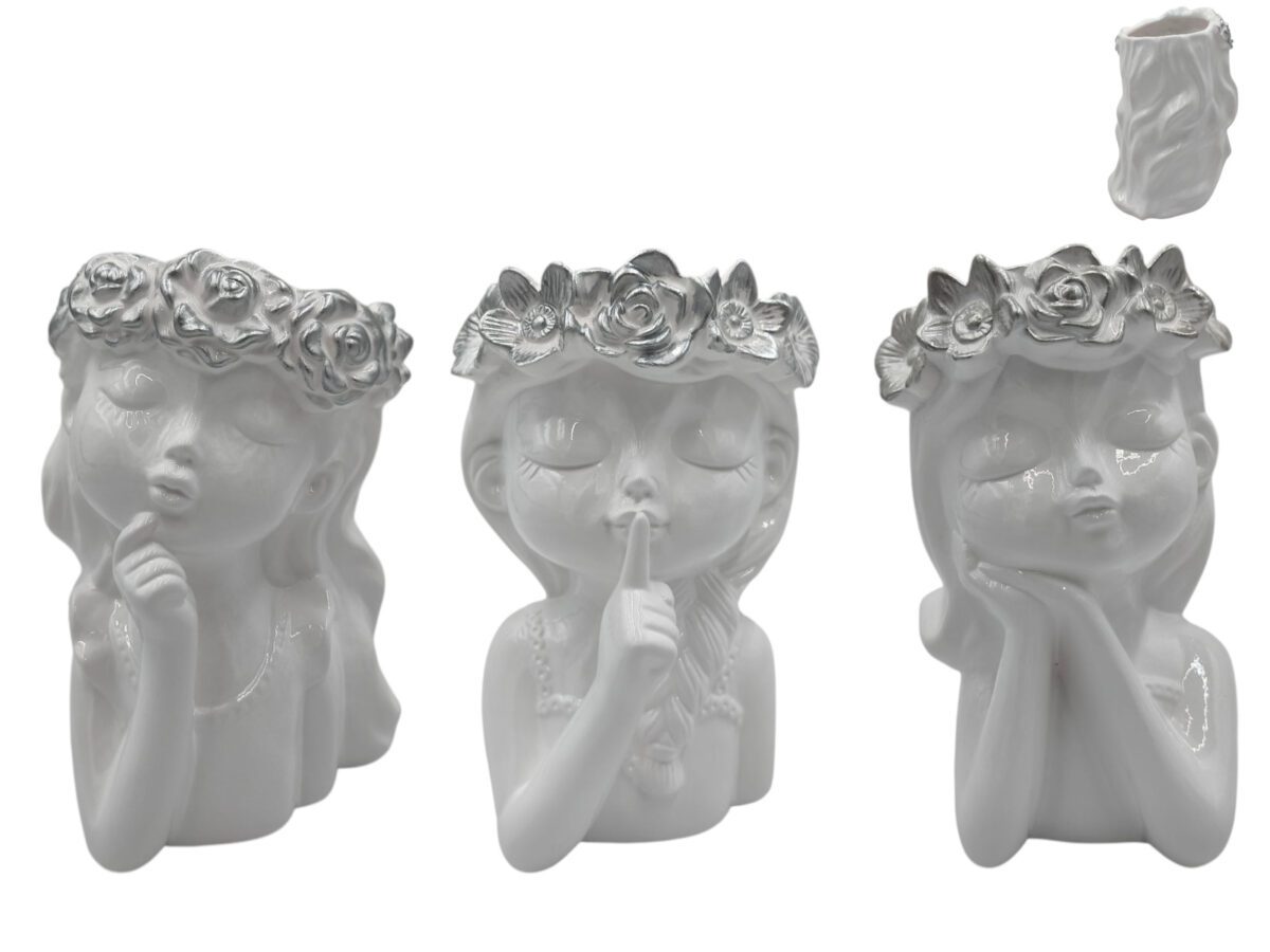 Início Decoração Figuras de Decoração CERAMICA- BUSTO MENINA COR:PRATA
