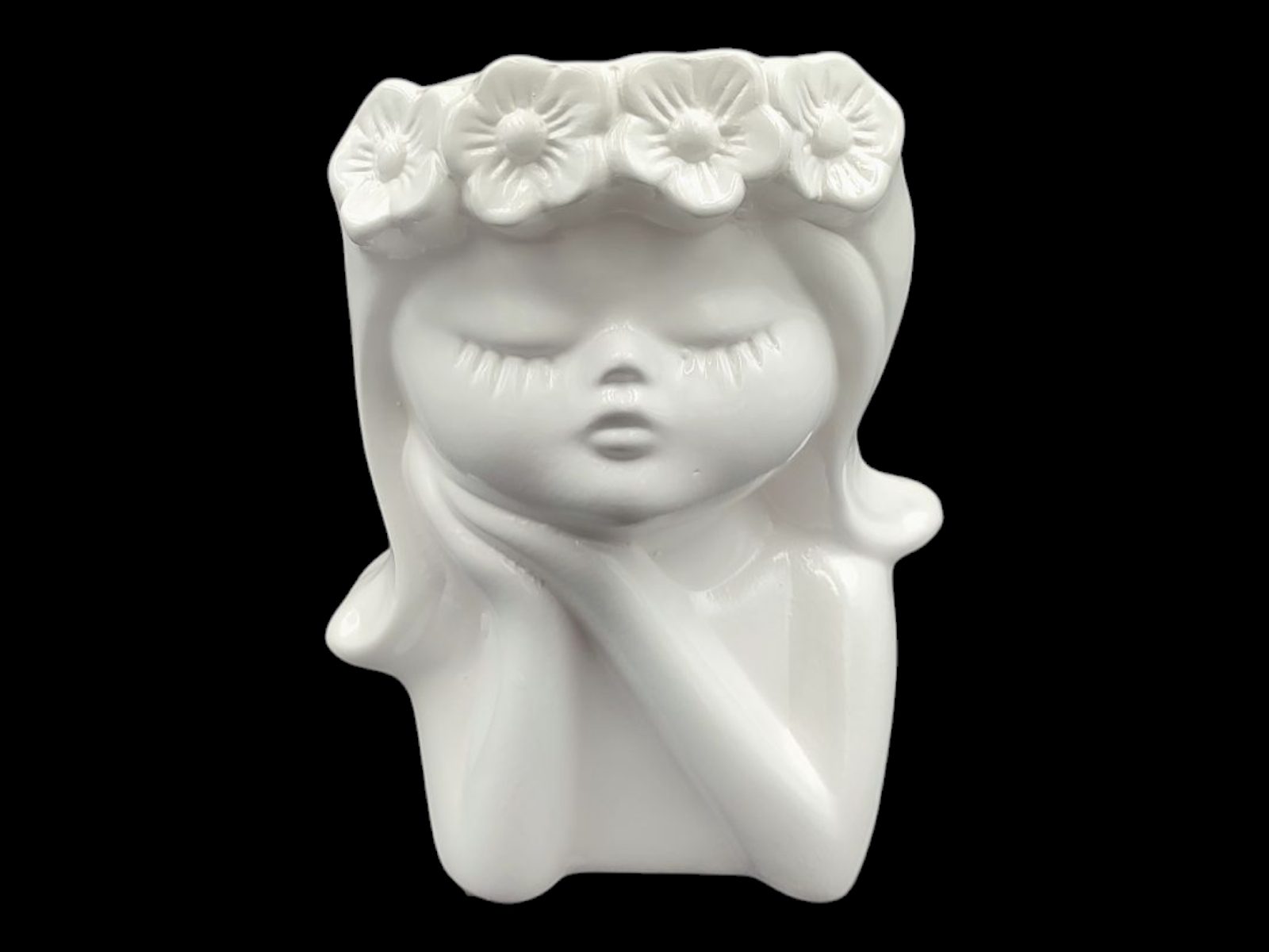CERAMICA- MENINA VASO CATOS C/FLOR COR:BRANCO