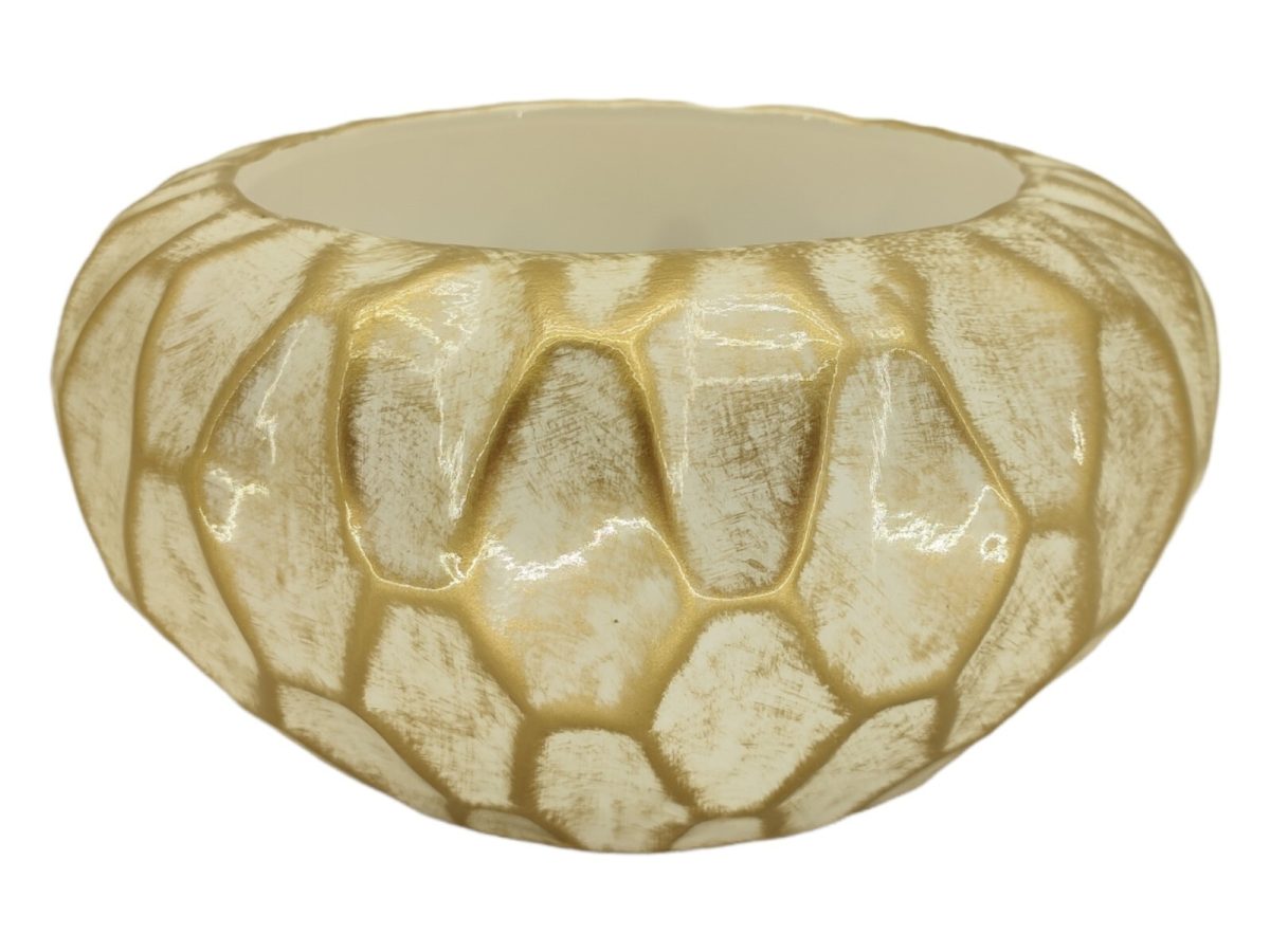 CERAMICA- TAÇA KANSAS PEQ. COR:BRANCO/OURO