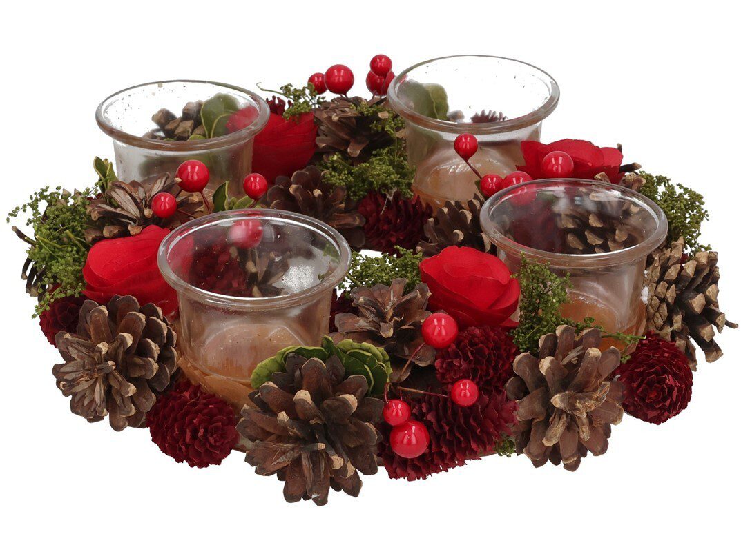Início Temas Natal Diversos natal COROA PORTAVELAS C/4 VIDROS
