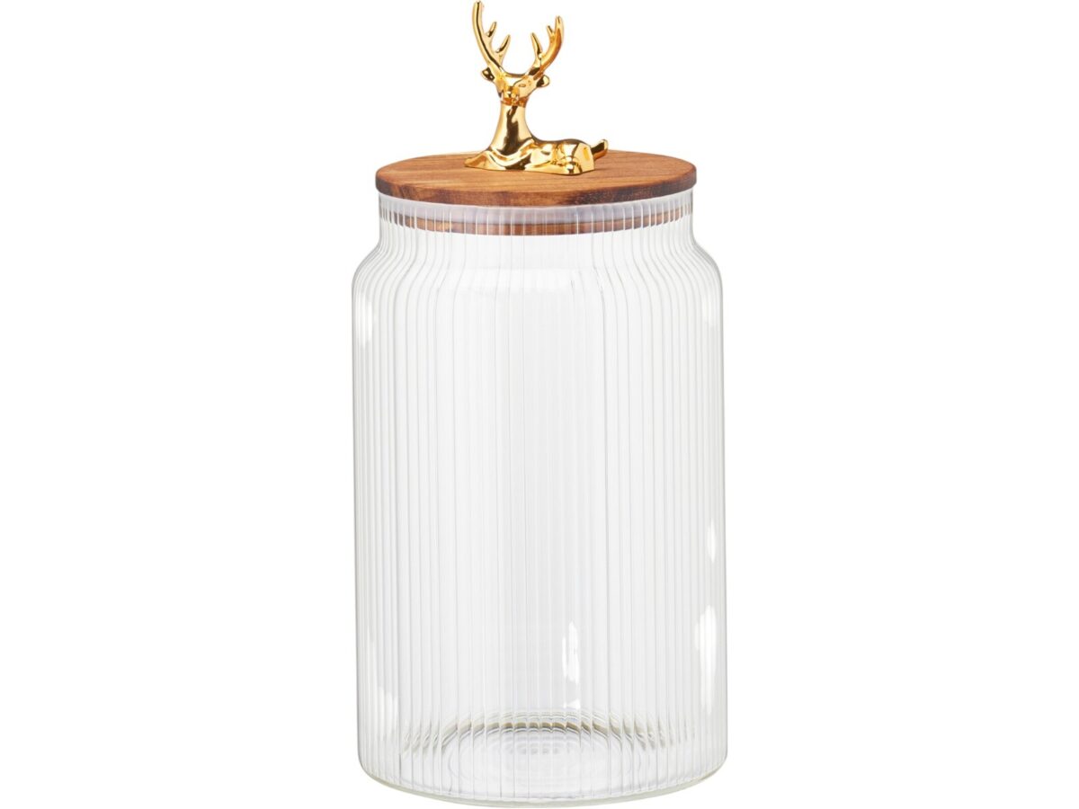 Início Temas Natal Diversos natal FRASCO VIDRO C/TAMPA MADEIRA RENA DOURADA