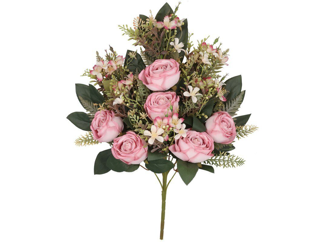 Início Flores Artificias e Secas Flor Artificial Bouquet MOLHO PALMA ROSAS X12 COR:ROSA